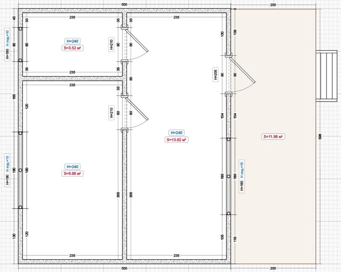 Размер: 6.0x5.0м. с верандой 6.0х2.0м. = 42кв.м.