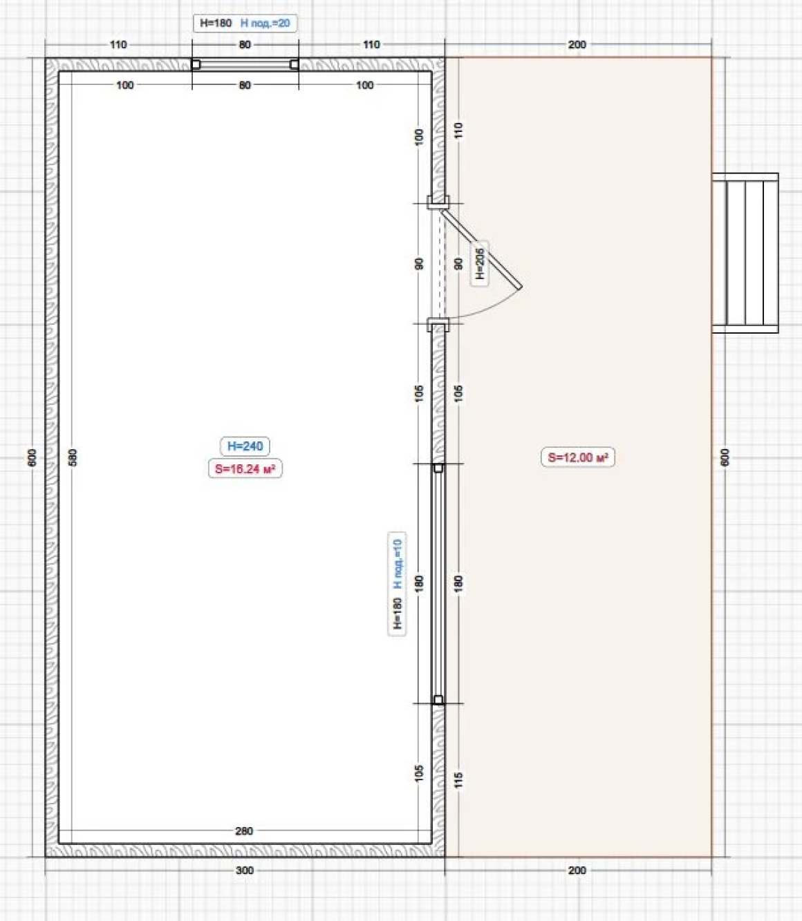 Размер: 6.0x3.0м. с верандой 6.0х2.0м. = 30кв.м.