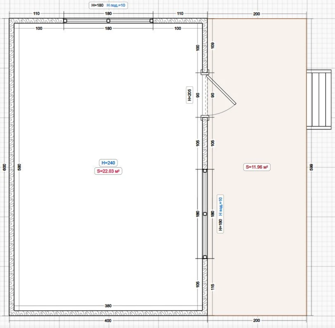Размер: 6.0x4.0м. с верандой 6.0х2.0м. = 36кв.м.