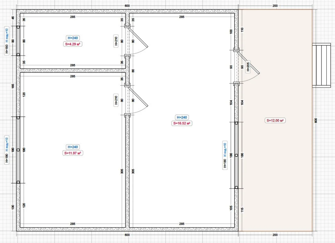Размер: 6.0x5.0м. с верандой 6.0х2.0м. = 42кв.м.