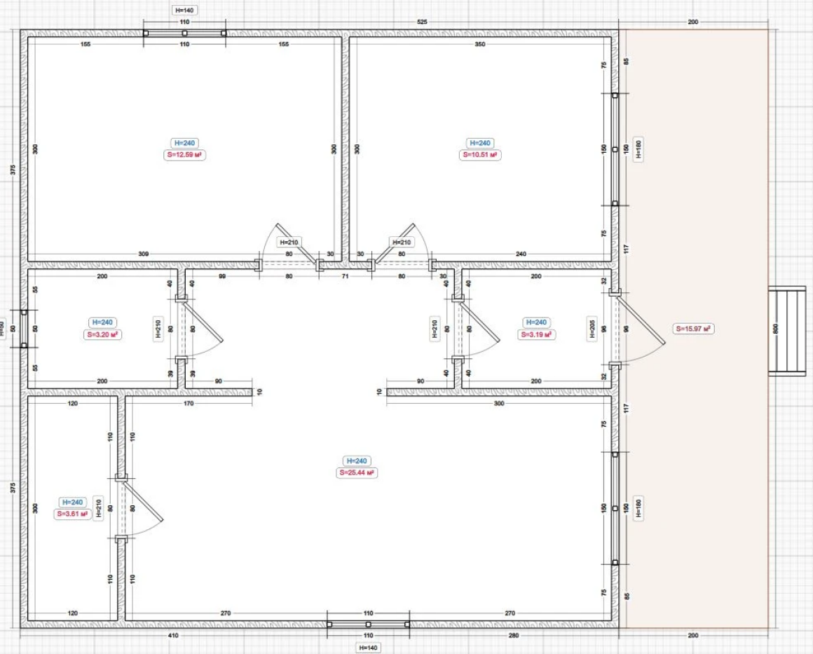 Размер: 8.0x8.0м. с верандой 8.0х2.0м. = 80кв.м.